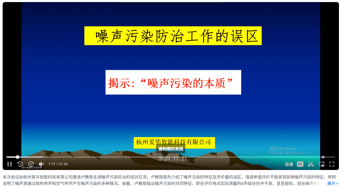 2025年11月21日,杭州愛華智能科技有限公司有幸邀請了原廣州市環(huán)境監(jiān)測中心站教授級高級工程師盧慶普老師前來交流指導(dǎo),并通過線下和線上視頻會議模式,為從事噪聲監(jiān)測及污染防治工作的廣大客戶朋友做了“噪聲污染防治工作誤區(qū)與本質(zhì)探析”專題培訓交流會。